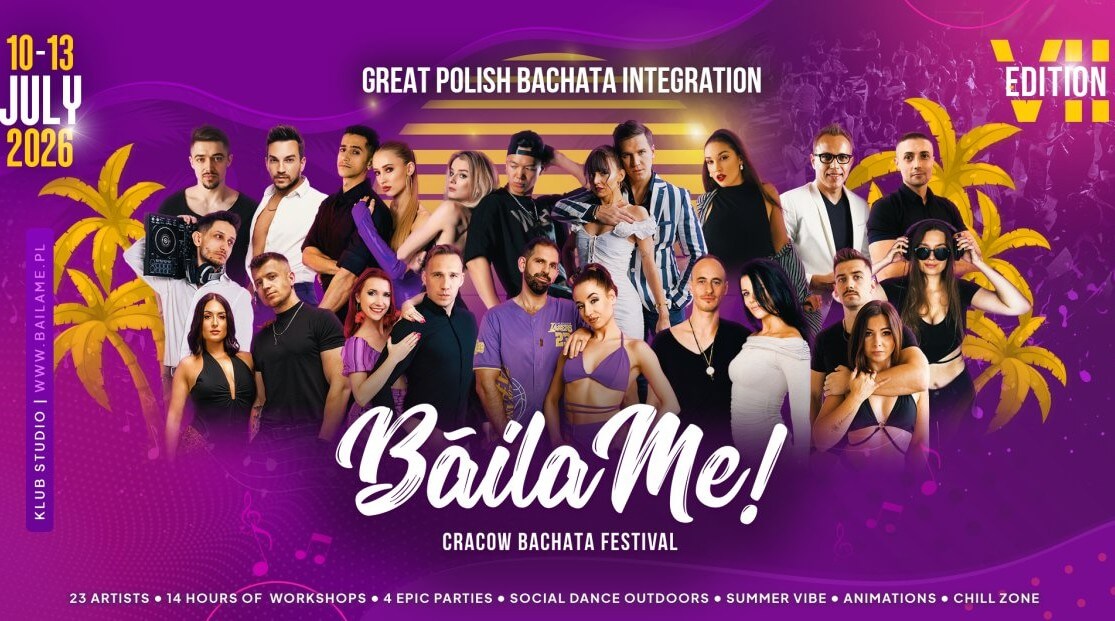 The Báilame Cracow Bachata Festival 2026 is scheduled from July 10–13! Use our special promo code discount link to save money on your full pass to the 7th edition of the BáilaMe Cracow Bachata Festival in Kraków!